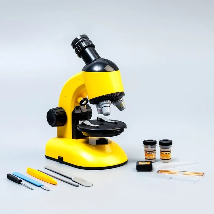 Микроскоп детский, кратность увеличения до 1200х, жёлтый, с подсветкой