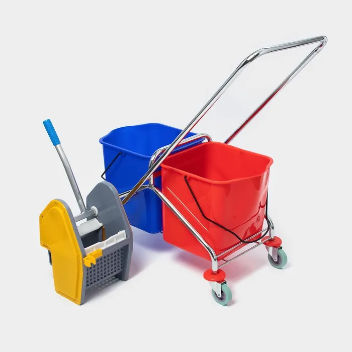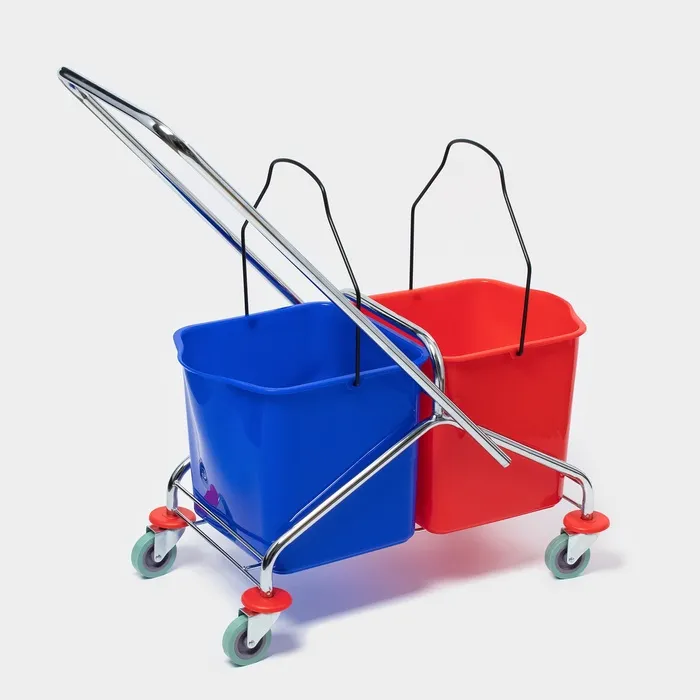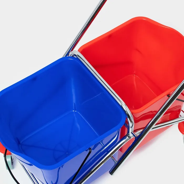 Тележка для уборки с вертикальным отжимом, два ведра по 25 литров, на колёсах, хромированная рама — Характеристики
