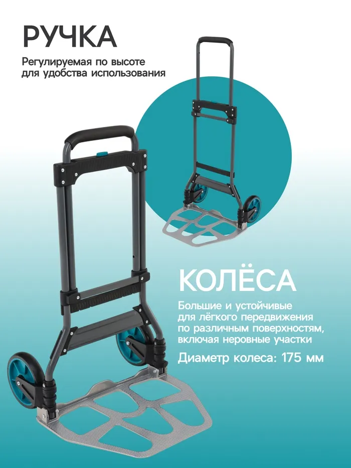 — Телескопическая ручка, можно подстроить под ваш рост или размер груза