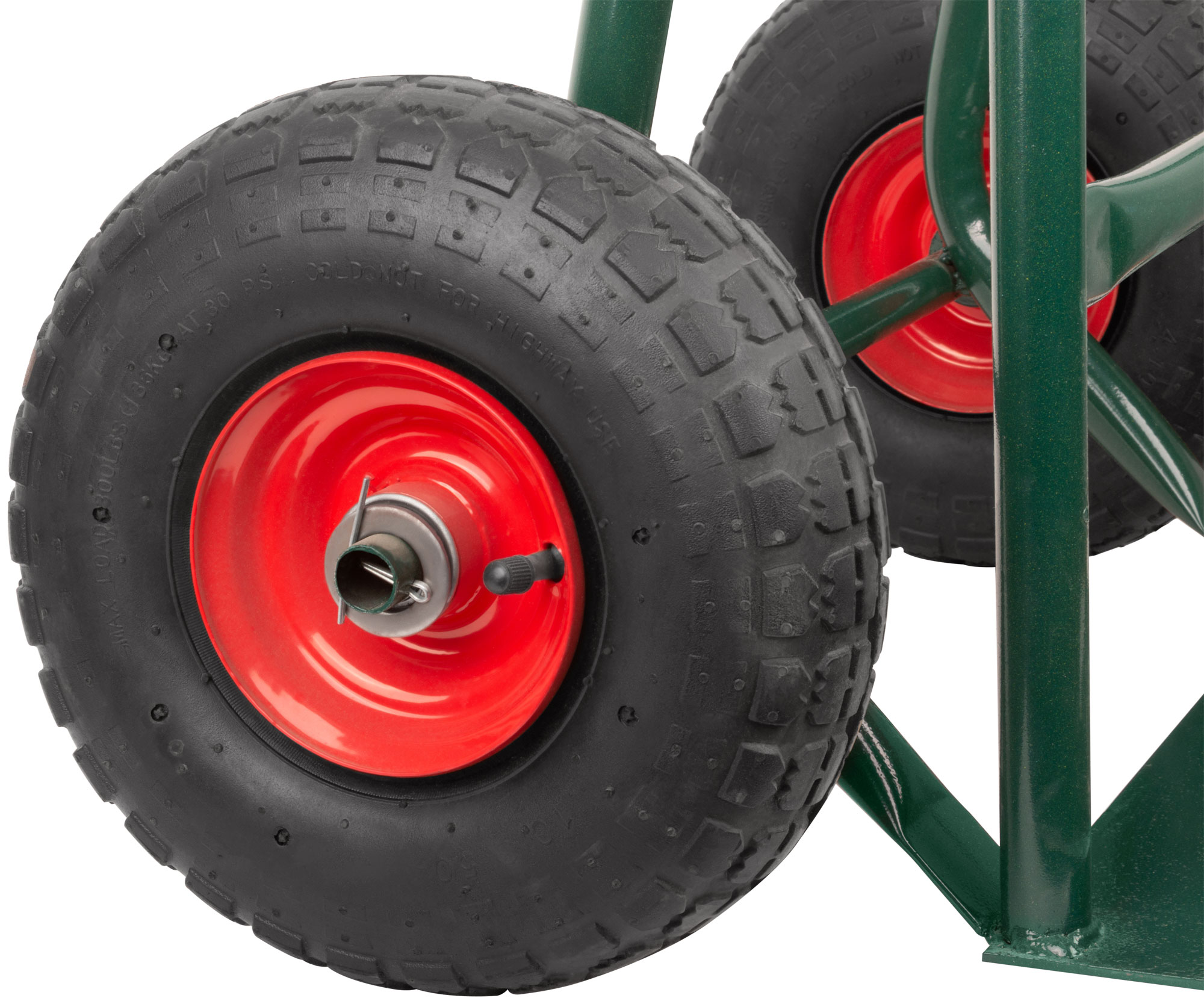 Тележка FIT 65473 выделяется своей надежностью и простотой в эксплуатации. Пневматические колеса обеспечивают маневренность, а стальная конструкция гарантирует долговечность.