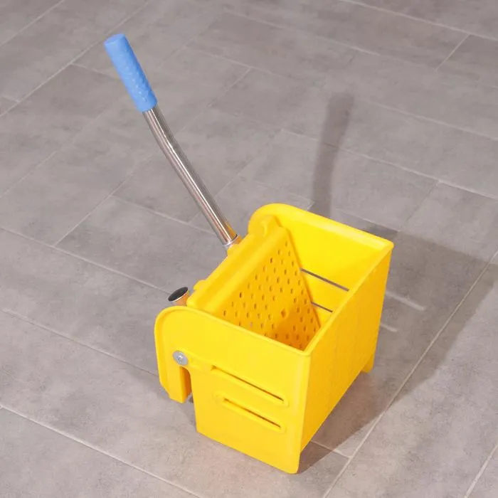 - Механический отжим быстро устанавливается на уборочную тележку или ведро и при необходимости просто демонтируется. При этом сами компоненты разборные и легко заменяются.