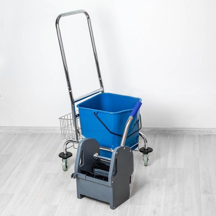 Тележка уборочная одноведерная с отжимом и сеткой, 23 л, хромированная рама — Характеристики