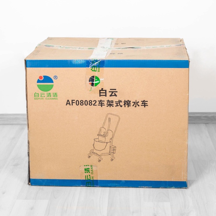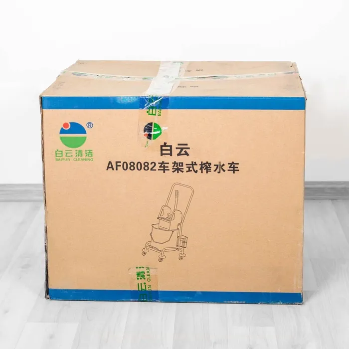 - Тележка оснащена отжимом с механическим приводом. С ним вы можете выжать моп без разводов и луж.