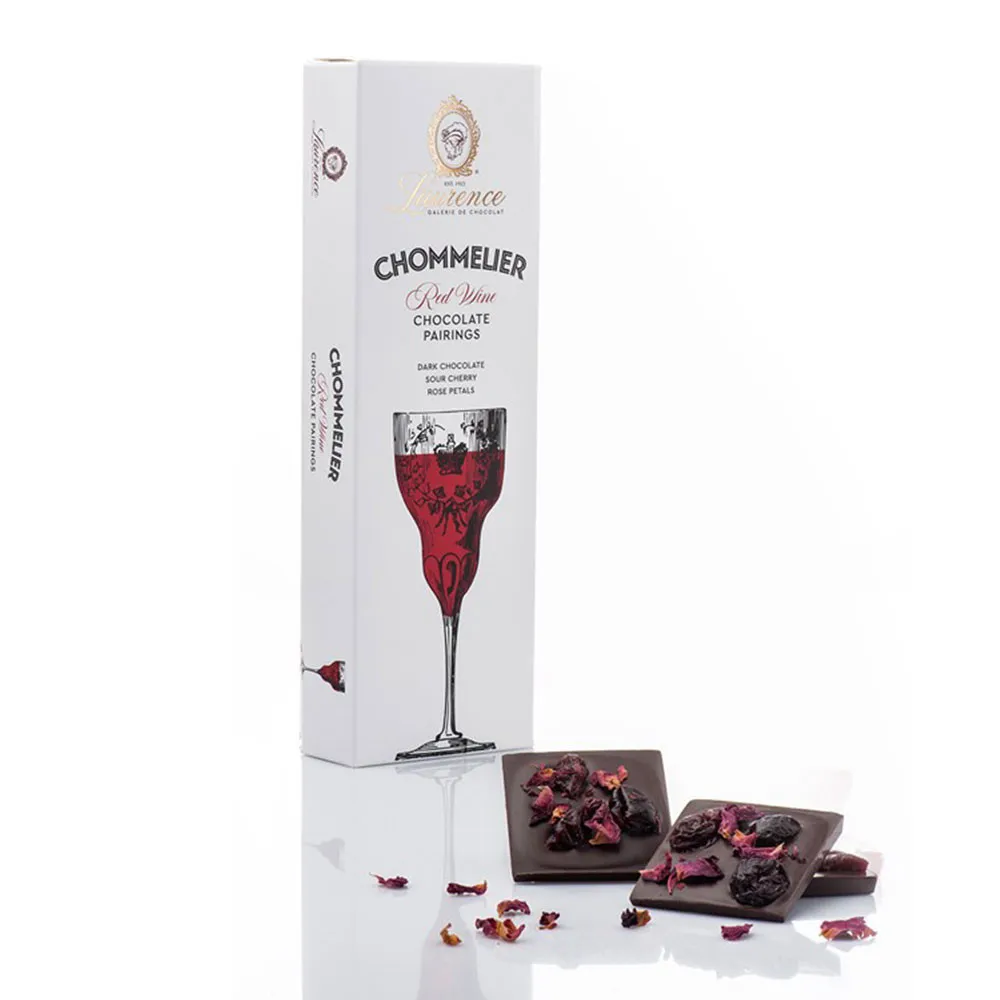 Серия шоколада Chommelier от Laurence создана для любителей шоколада и вина. Каждый шоколад Chommelier посвящен определенному типу вина, и когда шоколад встречает свою винную пару, результатом становится исключительное сочетание вкусов.