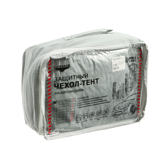Тент автомобильный CARTAGE, водонепроницаемый, полиэстер, M, 450×175×150 см — Характеристики