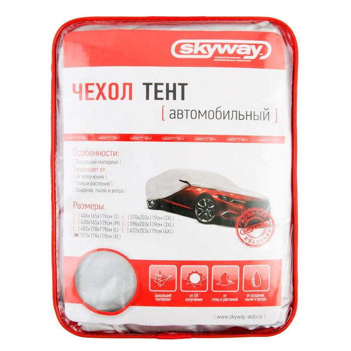 Тент автомобильный SKYWAY позволяет защитить кузов вашего автомобиля от коррозии и загрязнений во время хранения или транспортировки, а также избавит от необходимости частого мытья автомобиля. Чехол-тент предохраняет лакокрасочное покрытие кузова, стекла и фары от воздействия прямых солнечных лучей и неблагоприятных погодных условий, загрязнений. Легко и быстро надевается, не царапая и не повреждая его.