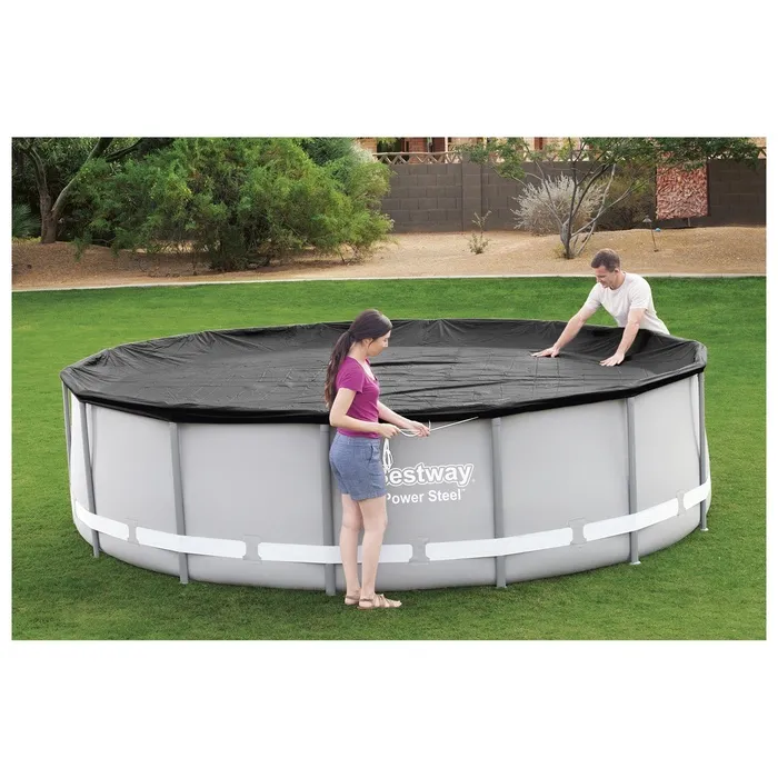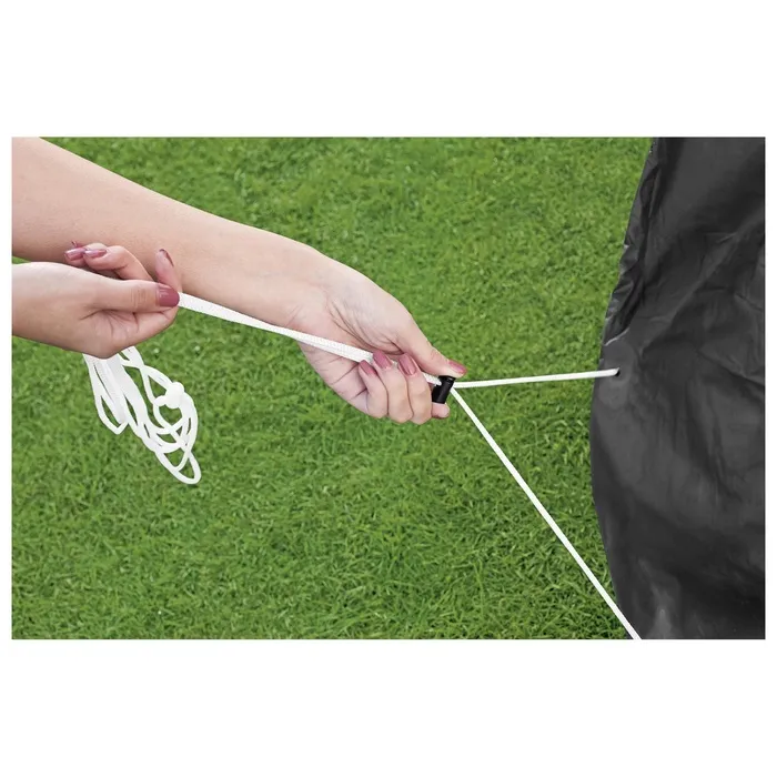 Фиксация тента с помощью специальной верёвки делает его установку быстрой и удобной. Рекомендуется использовать тент, если бассейн не будет эксплуатироваться в течение нескольких дней, чтобы поддерживать чистоту и качество воды.