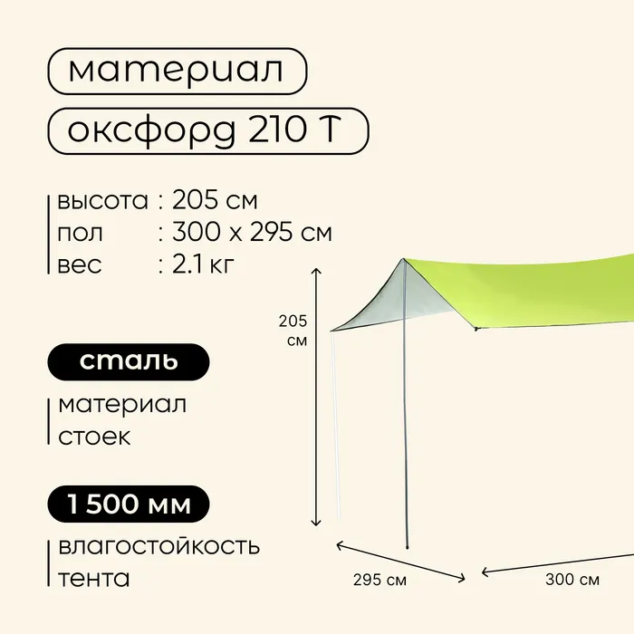 - Плотность тента — 210 г/м².