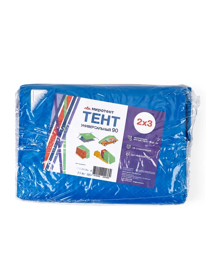 Тент защитный, 3×2 м, плотность 90 г/м², УФ, люверсы шаг 1 м, тарпаулин, МИКС — Характеристики