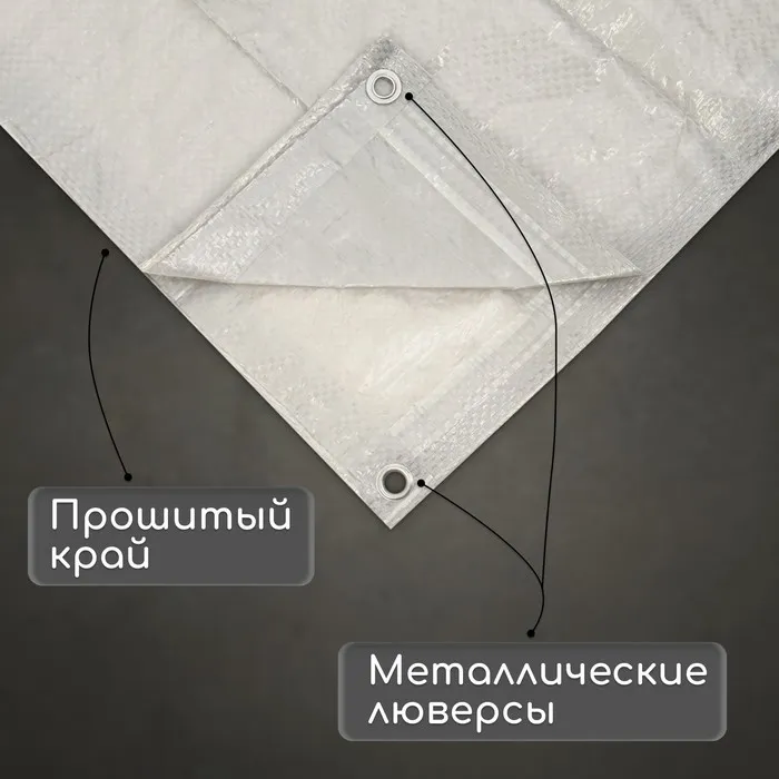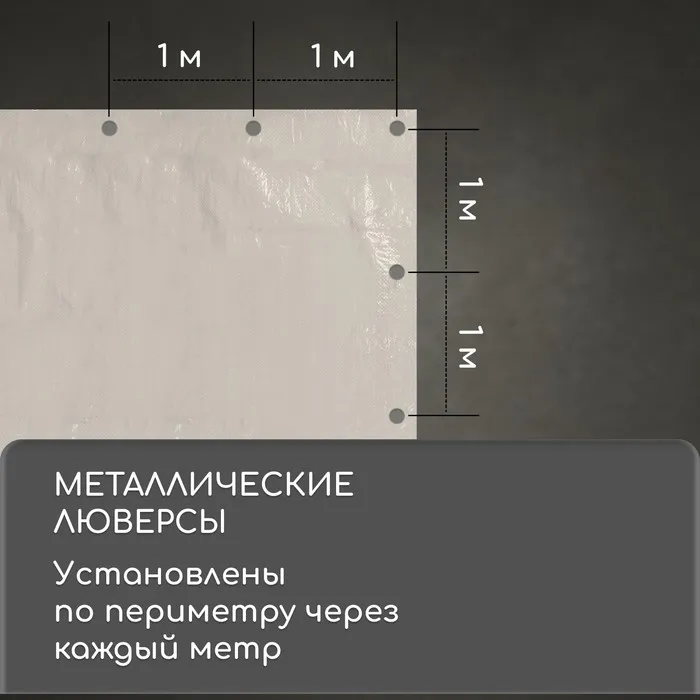 Тент защитный, 4 × 3 м, плотность 60 г/м², УФ, люверсы шаг 1 м, тарпаулин, серый — Характеристики