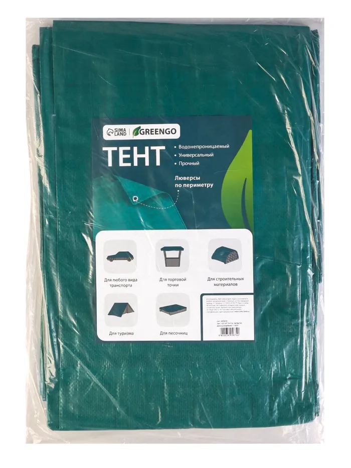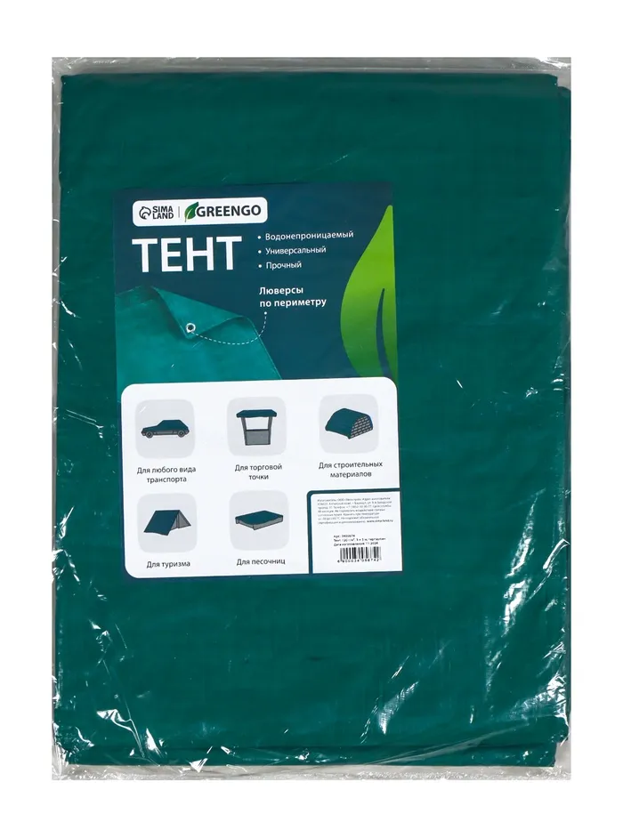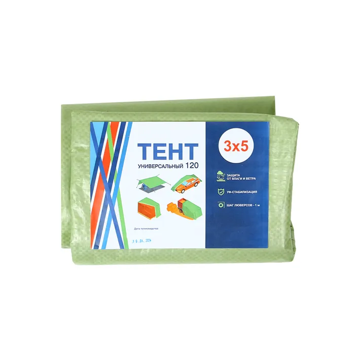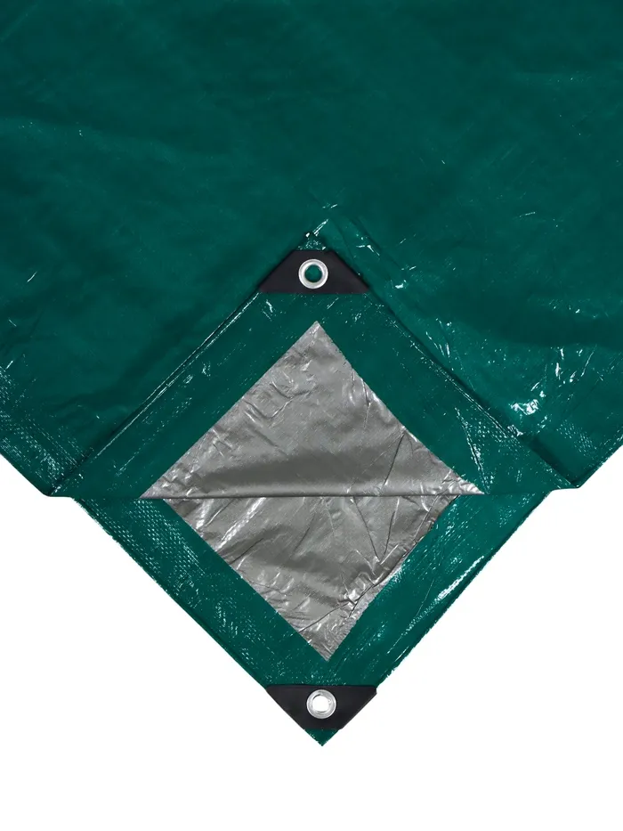 Тент защитный, 5×3 м, плотность 120 г/м², УФ, люверсы шаг 1 м, зелёный/серебристый — Характеристики