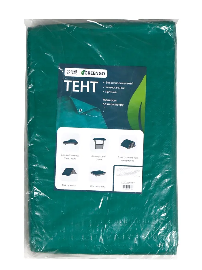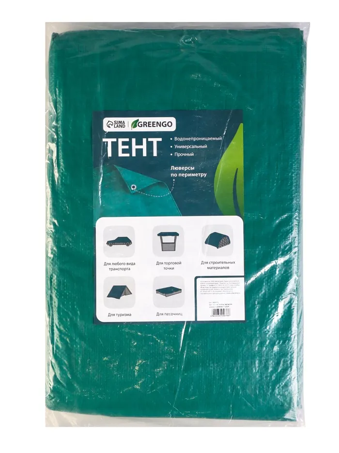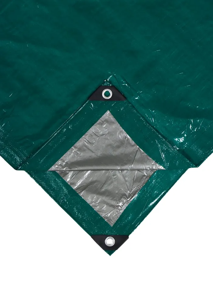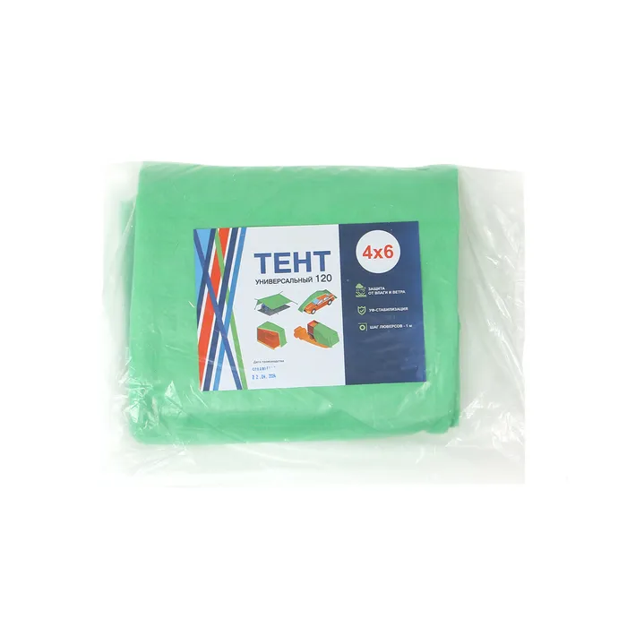 Тент защитный, 6×4 м, плотность 120 г/м², УФ, люверсы шаг 1 м, зелёный/серебристый — Характеристики