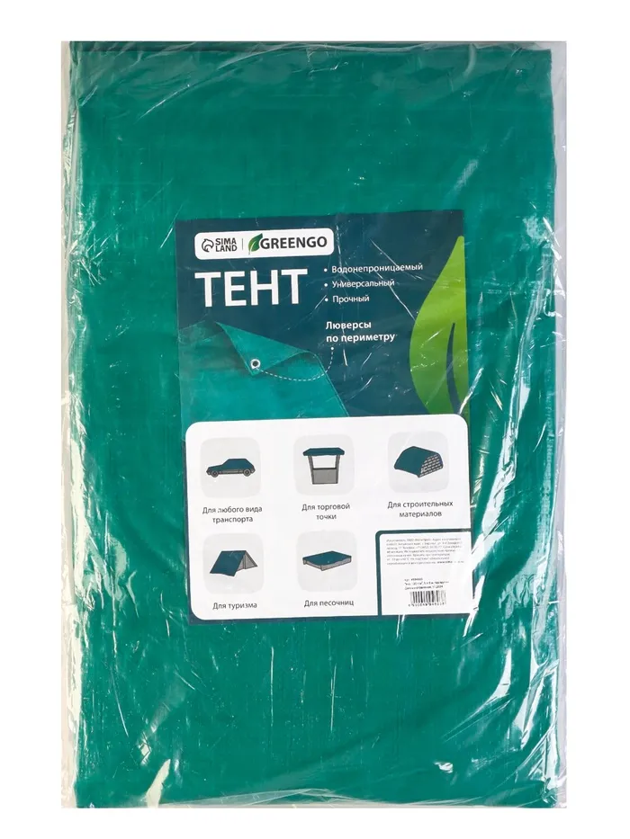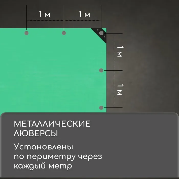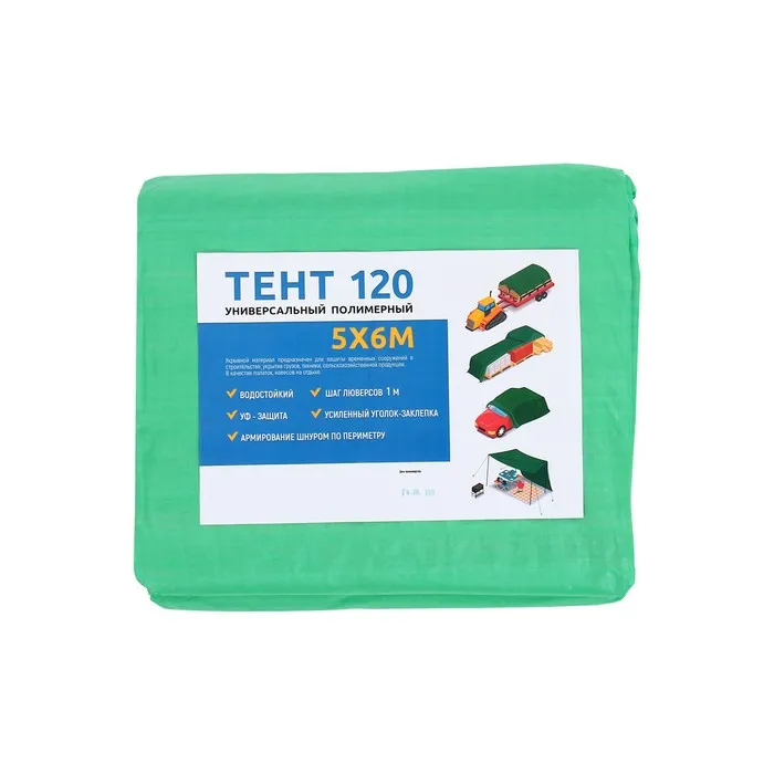 Тент защитный, 6×5 м, плотность 120 г/м², УФ, люверсы шаг 1 м, зелёный — Характеристики