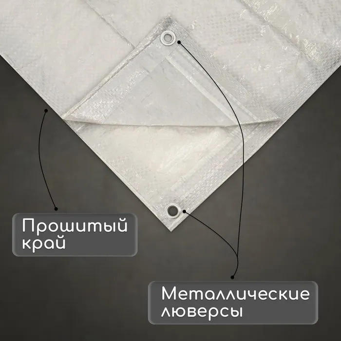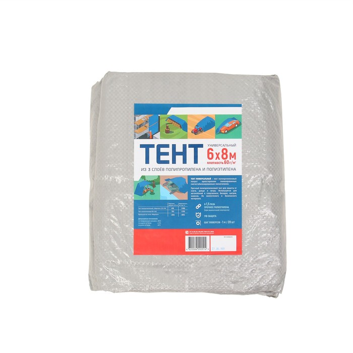 Тент защитный, 8 × 6 м, плотность 60 г/м², УФ, люверсы шаг 1 м, тарпаулин, серый — Характеристики