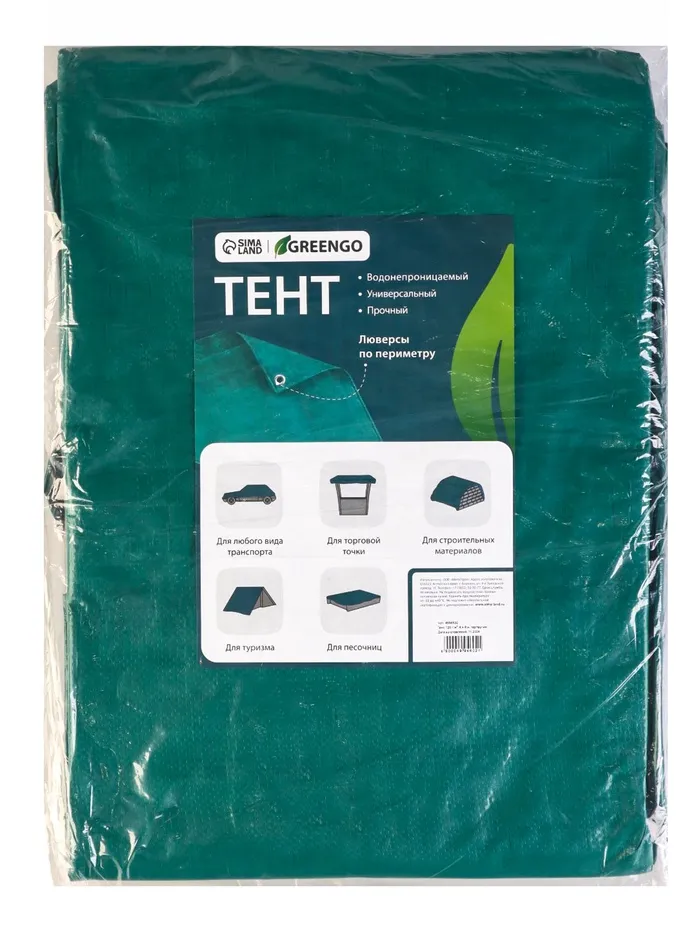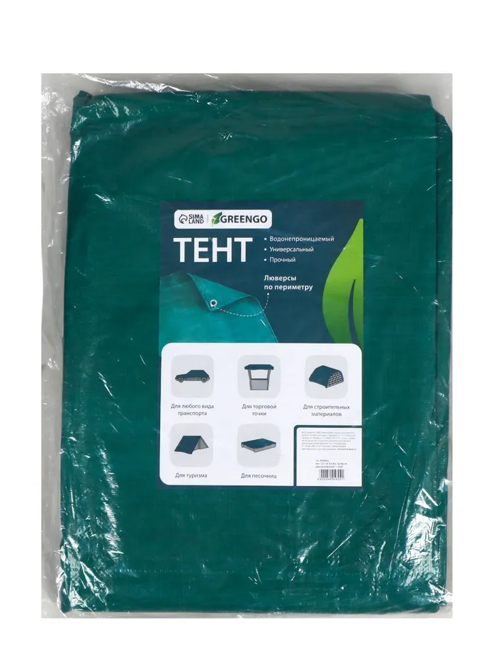 Тент защитный, 8×4 м, плотность 120 г/м², УФ, люверсы шаг 1 м, зелёный — Характеристики