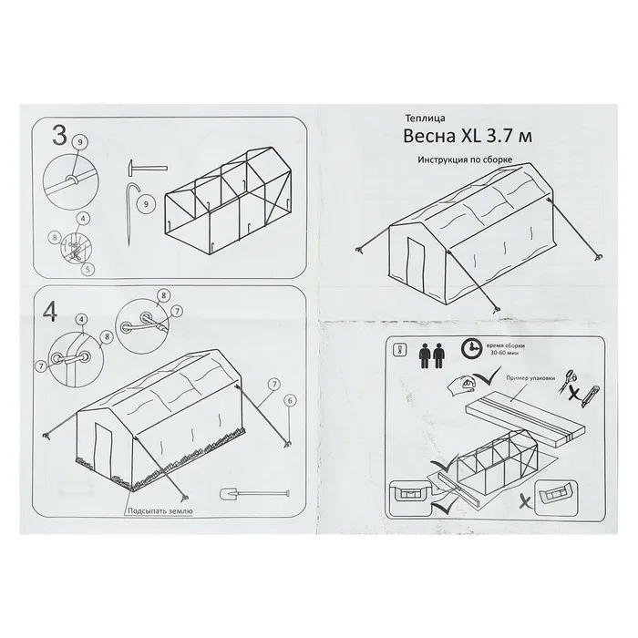 Теплица, 3,7 × 2,45 × 2,1 м, оцинкованный металл, профиль d = 25 мм, чехол из спанбонда 90 г/м² — Характеристики