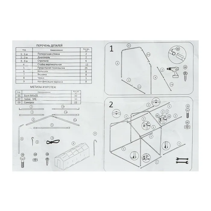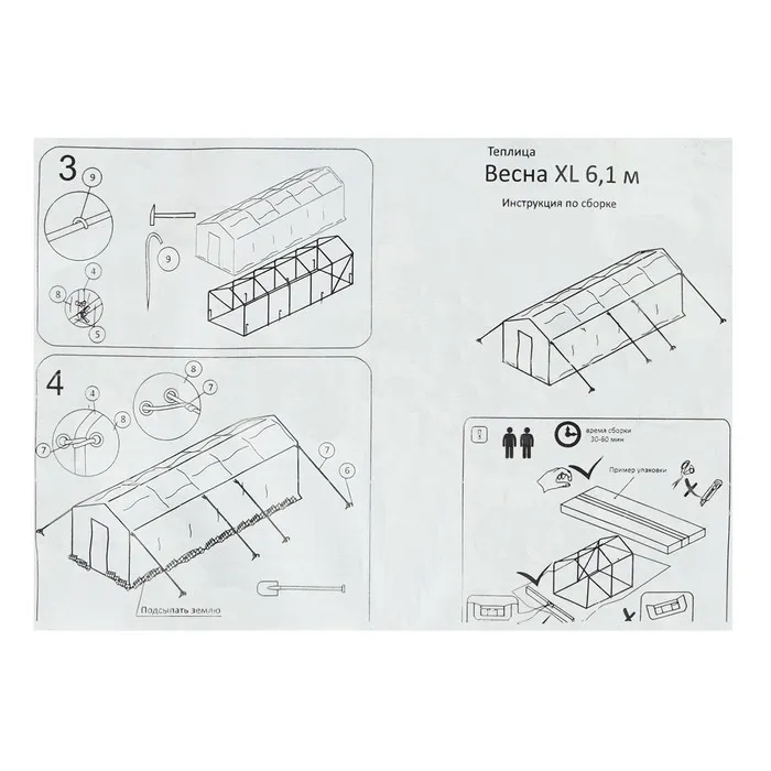 - Легкость в сборке: Все необходимые крепежи для сборки каркаса включены в комплект, что позволяет быстро и без лишних усилий собрать теплицу своими руками.
