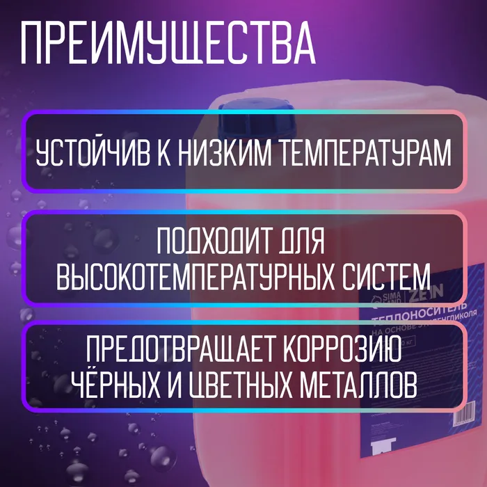 Теплоноситель ZEIN обеспечивает эффективную работу систем отопления в диапазоне температур от -30°С до +105°С.