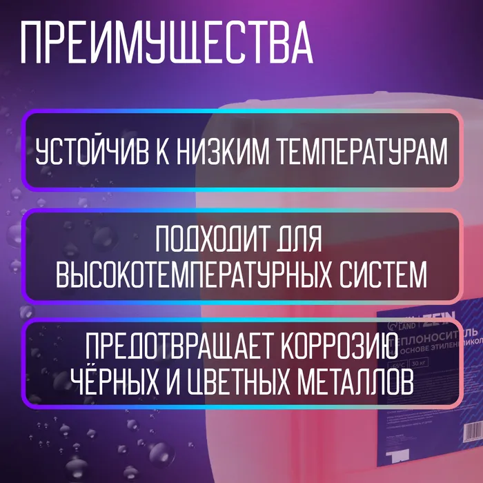 Теплоноситель ZEIN обеспечивает эффективную работу систем отопления в диапазоне температур от -65°С до +105°С.