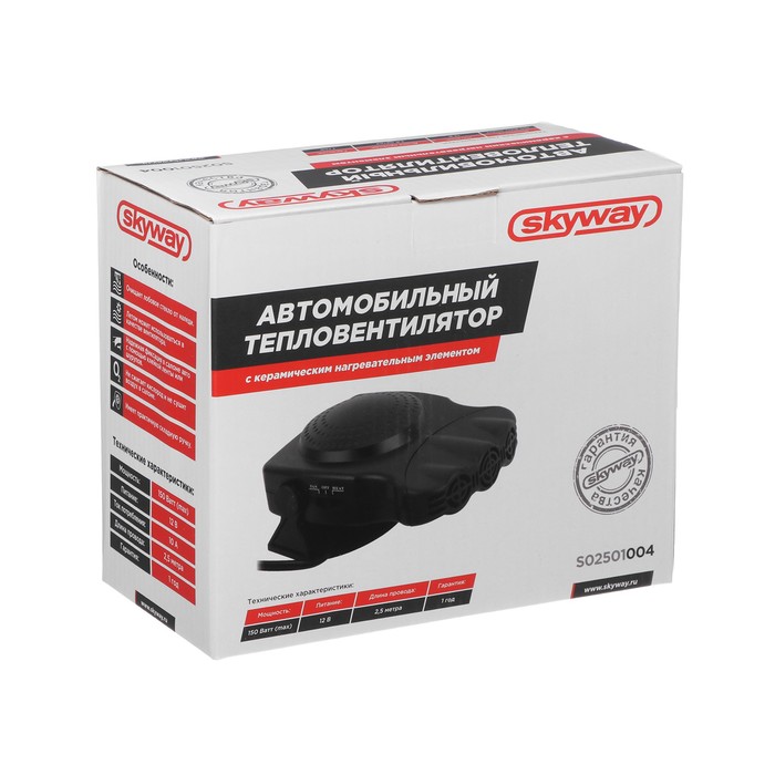 Тепловентилятор Skyway S02501004 - это компактный и эффективный обогреватель для автомобиля, работающий от прикуривателя. Устройство оснащено керамическим нагревательным элементом и вентилятором, что обеспечивает быстрый и равномерный нагрев воздуха в автомобиле. Черный цвет и компактный дизайн делают его идеальным для установки в любом автомобиле. Тепловентилятор S02501004 станет незаменимым помощником в холодное время года, особенно для тех, кто проводит много времени за рулем.