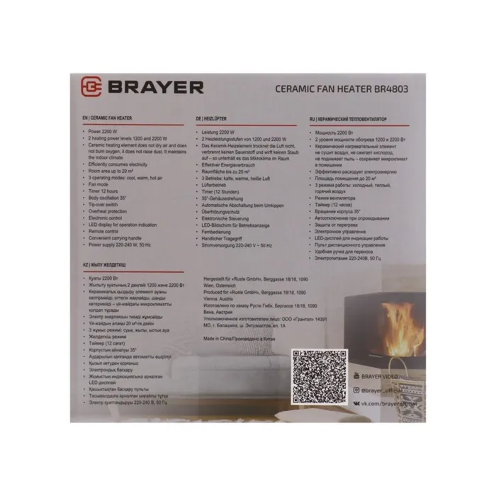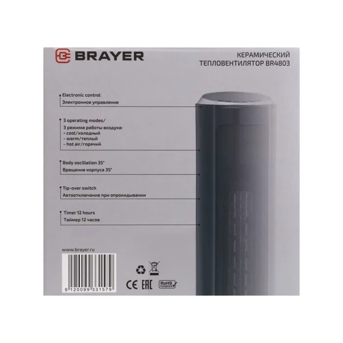 Тепловентилятор BRAYER BR4803, 2200 Вт, 2 режима, напольный — Характеристики