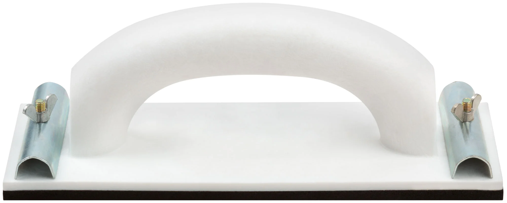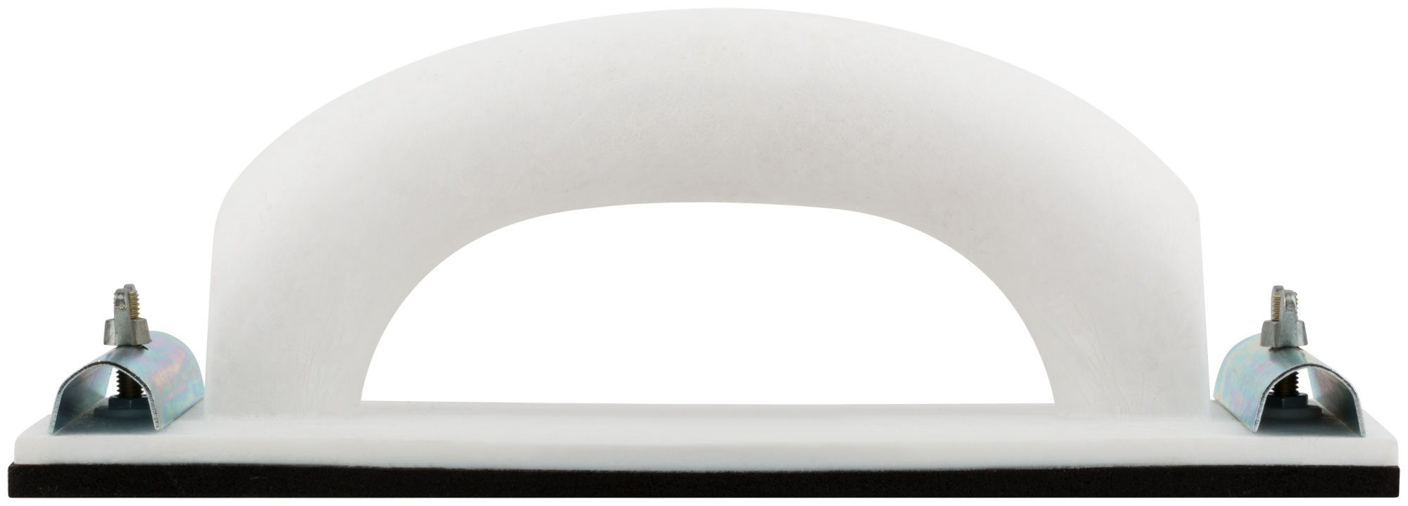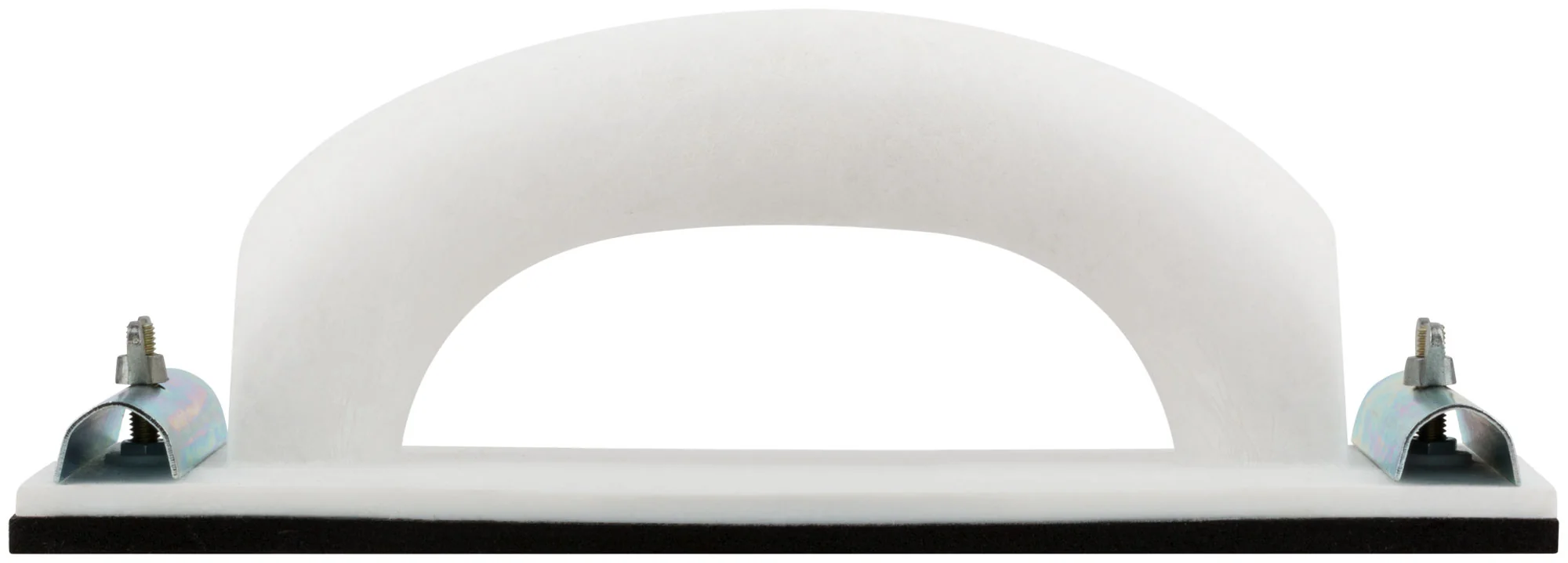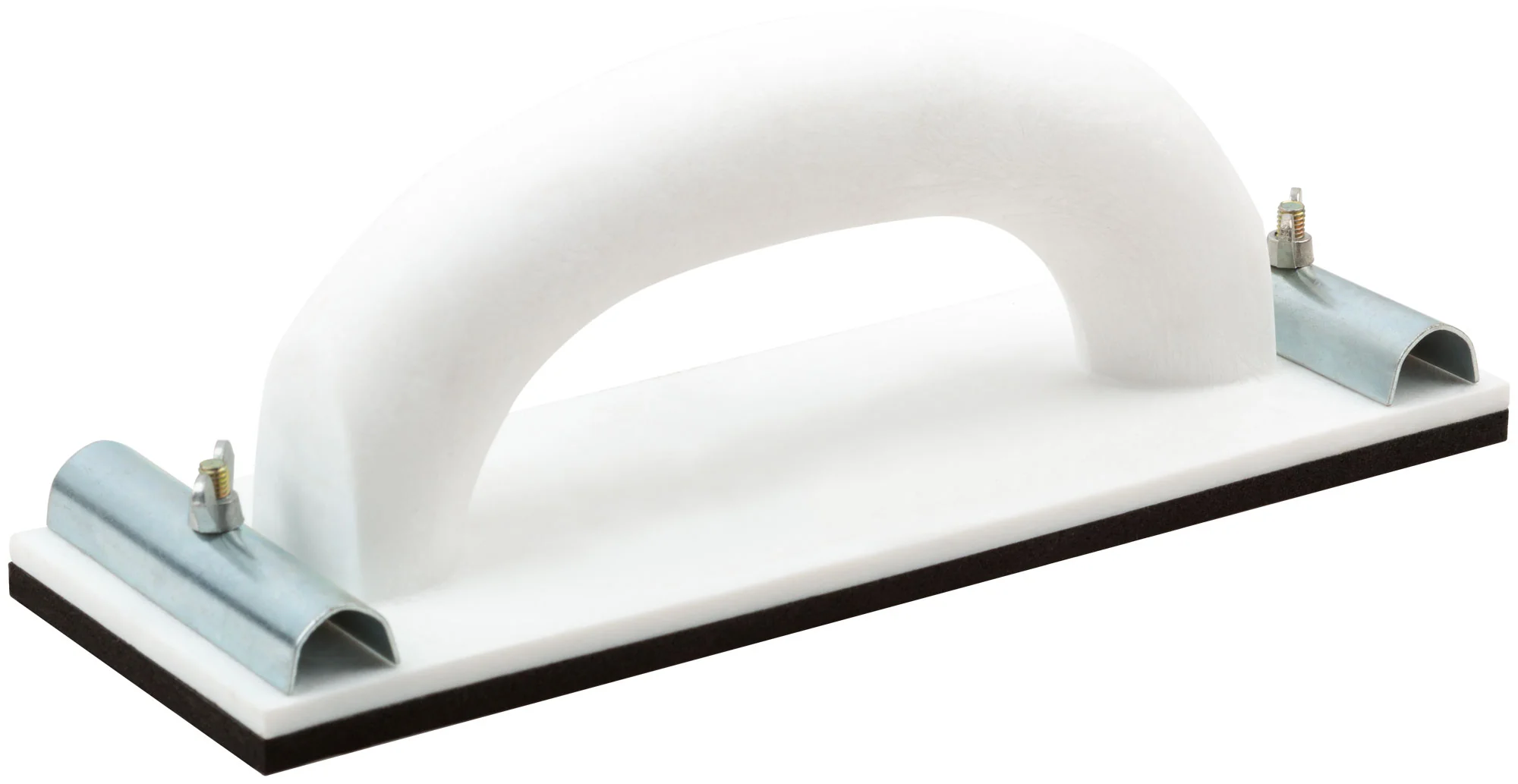 Изделие выполнено из прочного пластика, что делает его лёгким и удобным в использовании. Металлический прижим гарантирует надёжную фиксацию наждачной бумаги, исключая её соскальзывание во время работы.