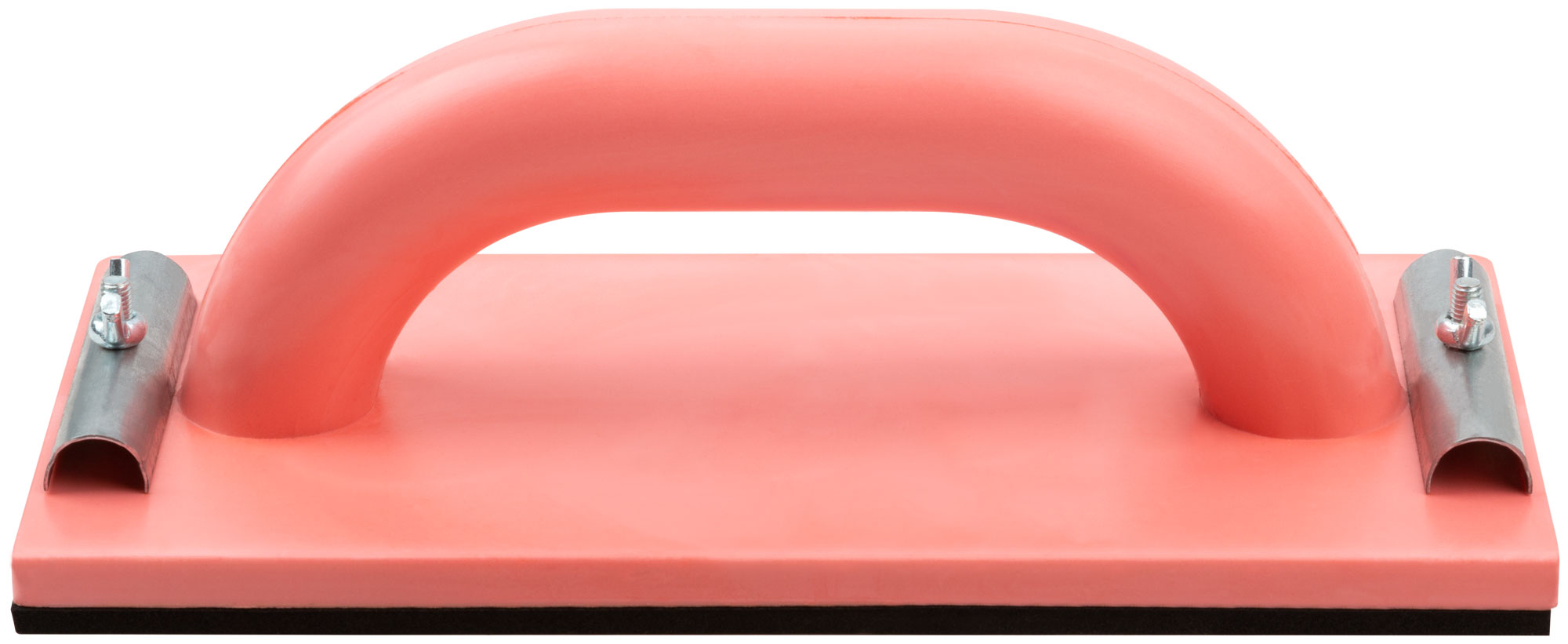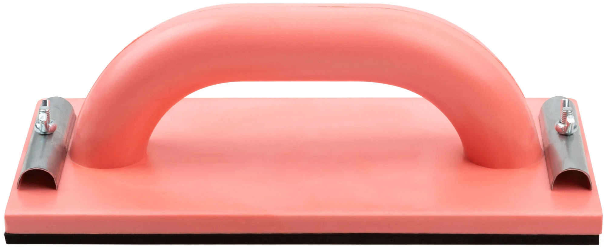 Тёрка выполнена из прочного полиуретана, что обеспечивает легкость конструкции и долговечность. Металлические прижимы надежно фиксируют наждачную бумагу, предотвращая её смещение во время работы.