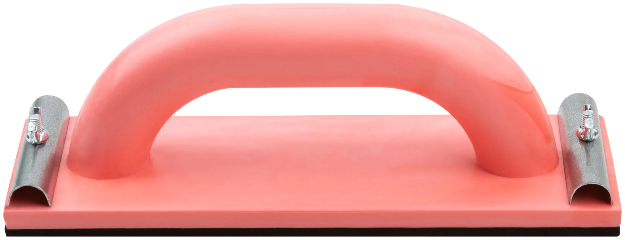Изготовлена из прочного полиуретана, тёрка оснащена металлическими прижимами, которые надежно фиксируют наждачную бумагу. Размеры 230х80 мм делают её удобной для работы в различных условиях.