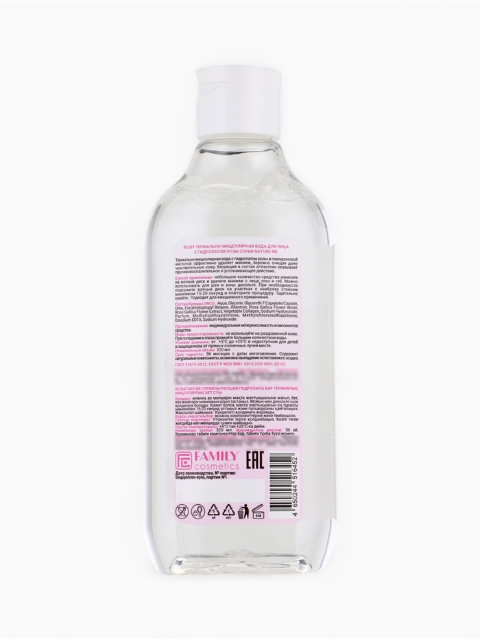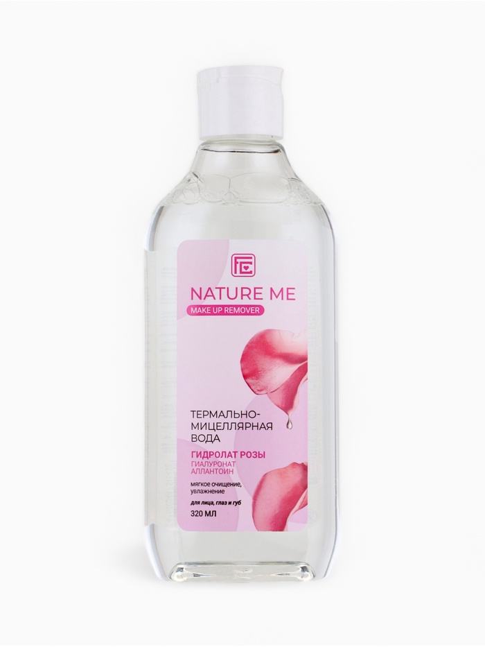 Термально-мицеллярная вода NATURE ME с гидролатом розы и гиалуроновой кислотой мягко и эффективно удаляет макияж с лица, глаз и губ, не нарушая естественный баланс кожи. Средство подходит для чувствительной кожи и может использоваться для шеи и зоны декольте.