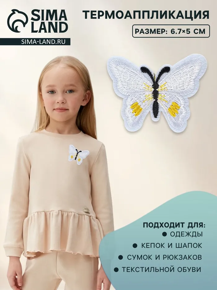 Термоаппликация «Бабочка», 6.7×5 см, фасовка 10 шт., белая — Характеристики