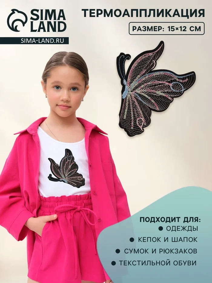 Термоаппликация «Бабочка» — это яркая текстильая наклейка, которая легко прикрепляется к ткани с помощью утюга. Идеально подходят для декорирования одежды, аксессуаров и других текстильных изделий.