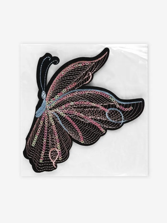 Термоаппликация «Бабочка», с пайетками, 15×12 см, чёрная, розовая — Характеристики