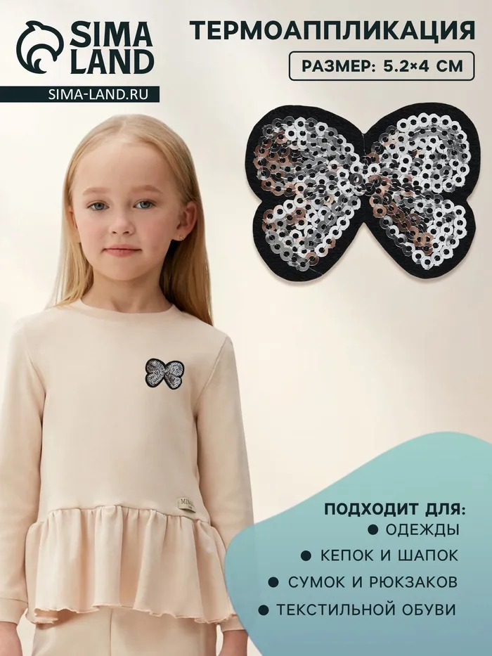 Термоаппликация «Бантик», с пайетками, 5.2×4 см, цвет серебряный — Характеристики
