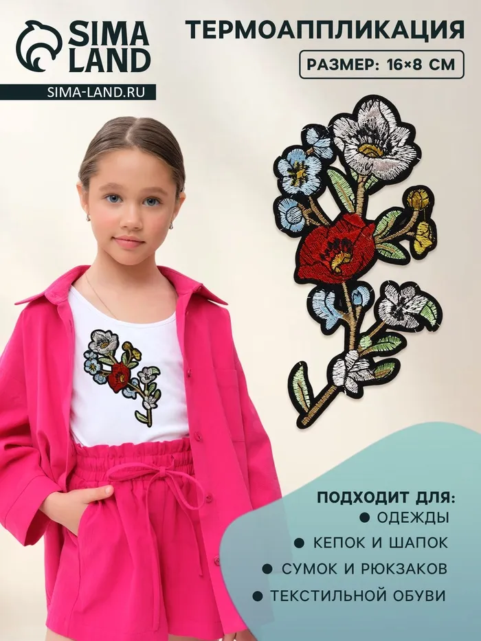Добавьте яркости и праздничного настроения! Термонаклейка с цветами для девочек 16×8 см – это декоративное украшение, которое легко прикрепляется к текстилю и создает праздничную атмосферу. Подходит для оформления подарков, одежды или аксессуаров на 8 Марта и другие торжества.
