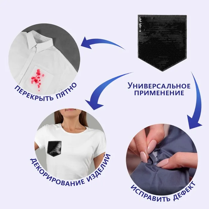 Термоаппликация двусторонняя «Карман», с пайетками, 12×10.5 см, чёрная, серебряный — Характеристики
