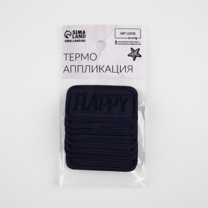 Термоаппликация «Happy», 5 × 3 см, цвет тёмно-синий, цена за 1 штуку — Характеристики