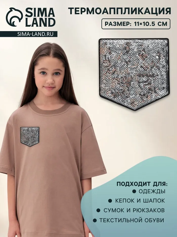 Термоаппликация «Карман», с пайетками, 11×10.5 см, цвет серебряный, чёрный — Характеристики