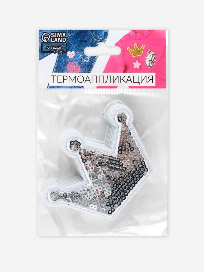 Термоаппликация «Корона» представляет собой яркий текстильный элемент с пайетками, который можно легко закрепить на ткани при помощи утюга. Она станет отличным решением для украшения одежды, аксессуаров и других тканевых предметов. Изображение короны придётся по душе истинным королевам и принцессам