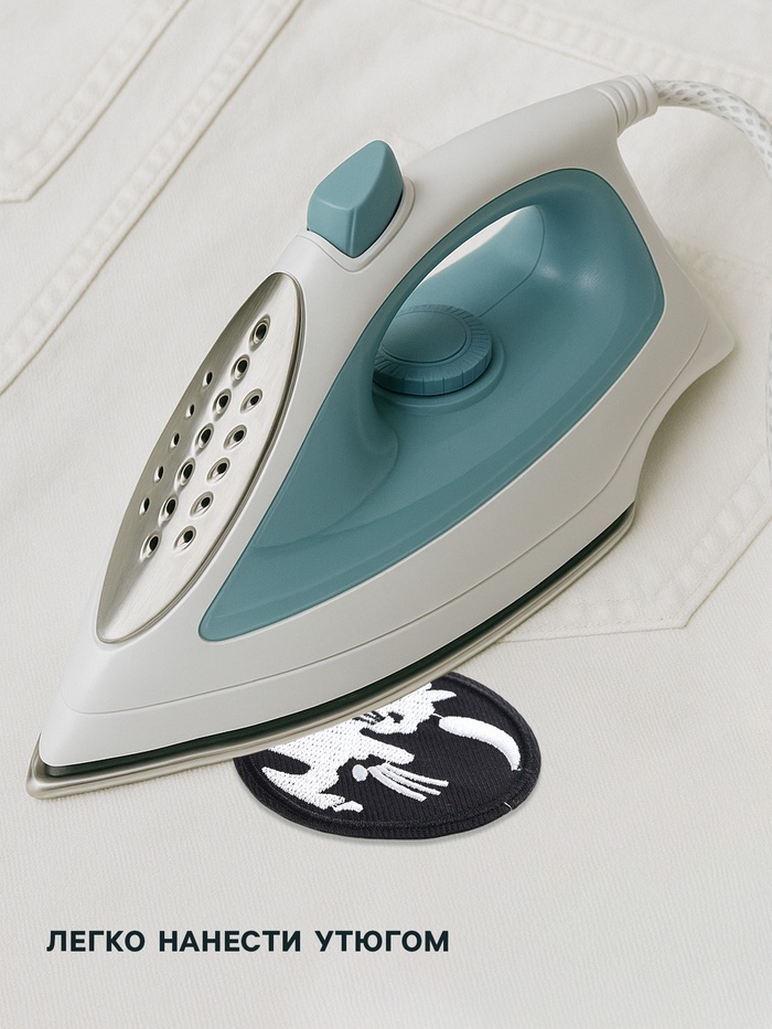 - Лёгкое нанесение: Просто приложите и прогладьте утюгом — полиэстеровая основа надёжно закрепится без следов клея. Не требует специальных навыков.