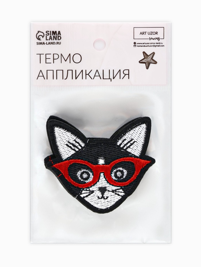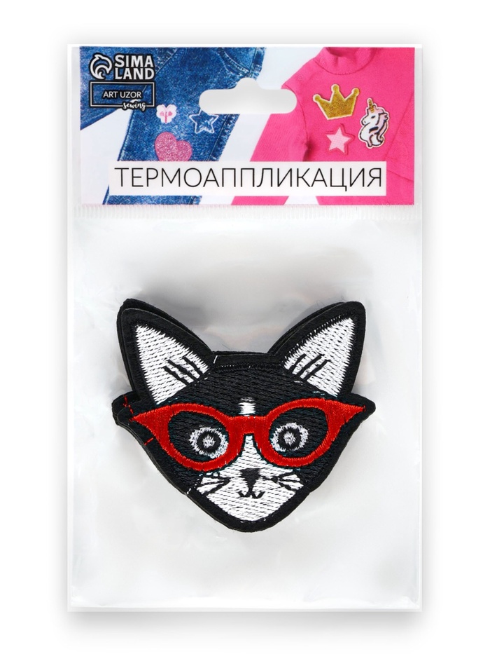 Термоаппликация «Кот в очках», 6×6 см, чёрная — Характеристики