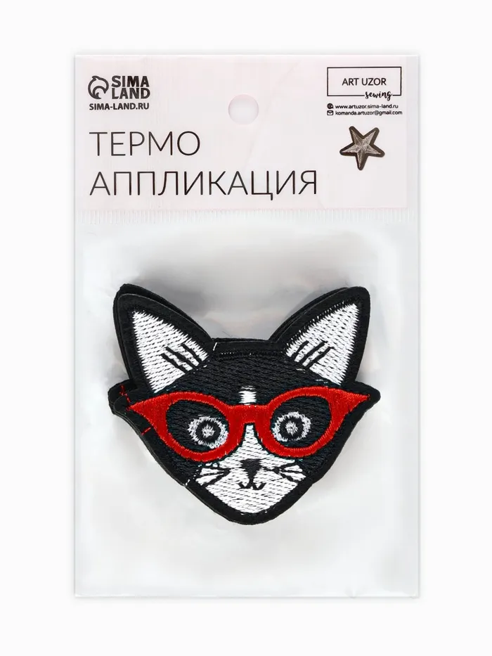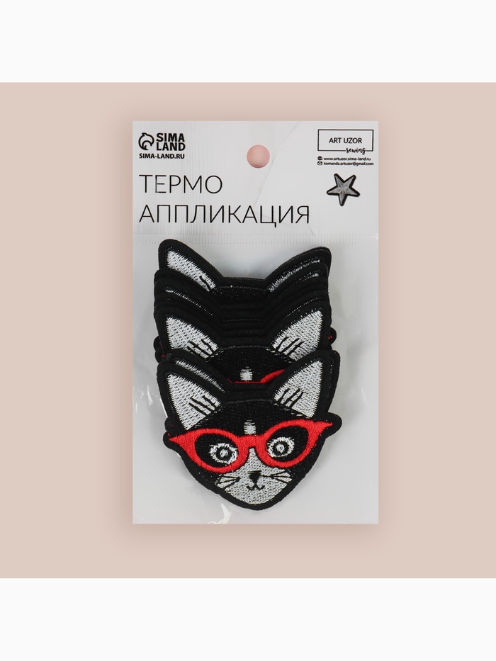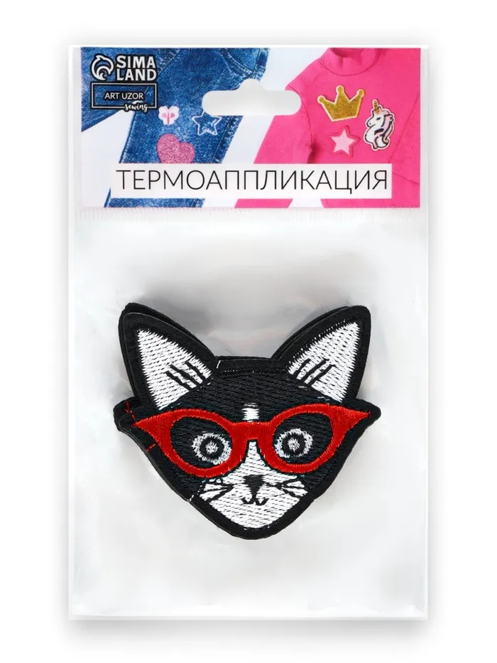 Термоаппликации «Кот в очках» — это милые и оригинальные декоративные элементы для текстиля с животной тематикой. Аппликации выполнены в виде забавных чёрных котов в очках, что делает их идеальными для создания игривых или интеллектуальных образов.