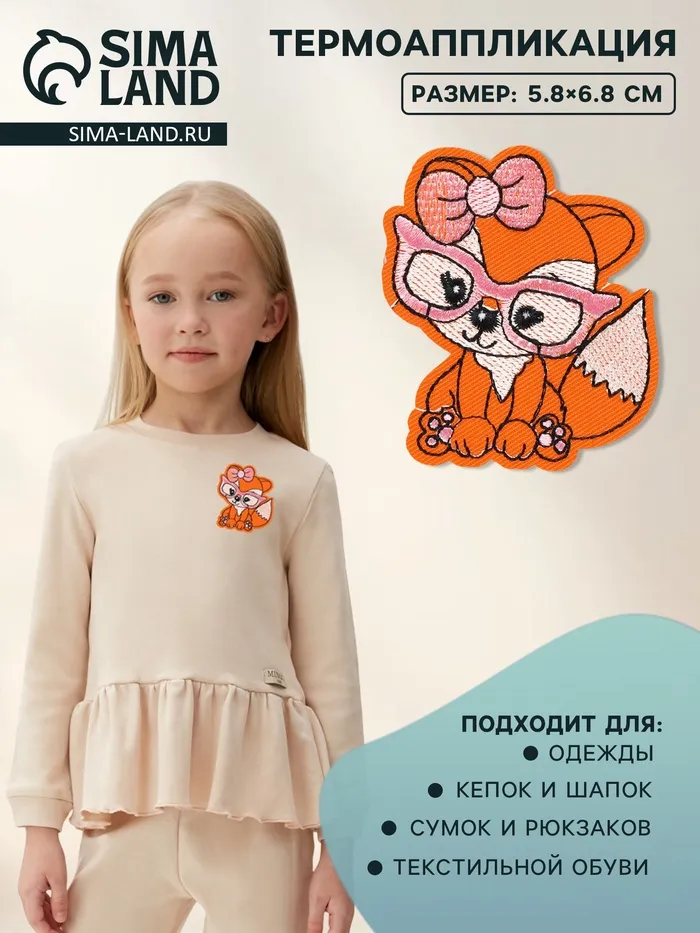 Термоаппликация «Лиса в очках», 5.8×6.8 см, оранжевая — Характеристики