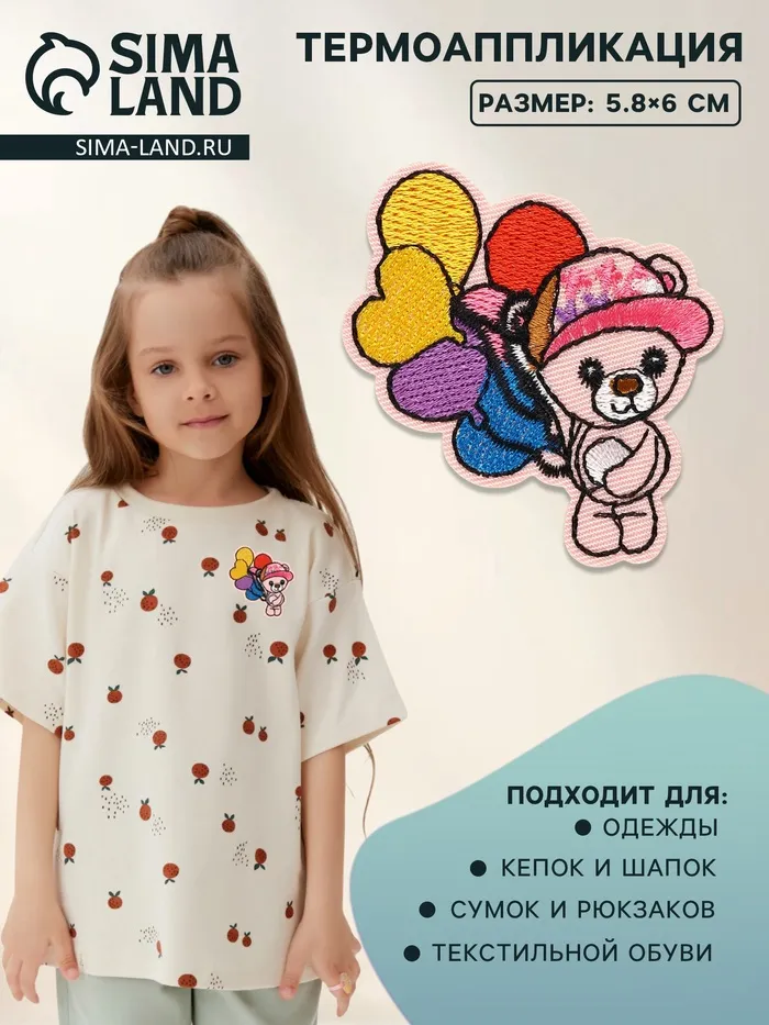 Термоаппликация «Мишка с шариками», 5.8×6 см, разноцветная — Характеристики