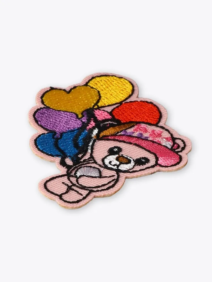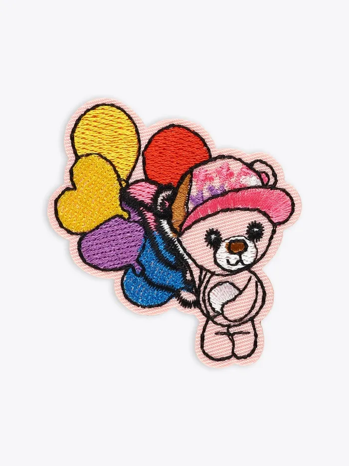 Создайте праздник на детской одежде за минуты! Красочный медвежонок с воздушными шарами превращает обычные вещи в праздничные.