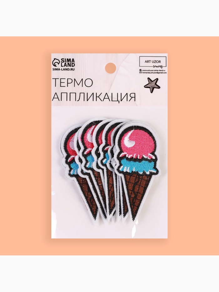 Добавьте яркие акценты в ваши креативные проекты с термоаппликацией в виде мороженого! Эта разноцветная аппликация размером 7.2×3.5 см из линии Арт Узор станет прекрасным украшением для одежды, аксессуаров и различных текстильных изделий.