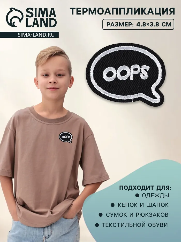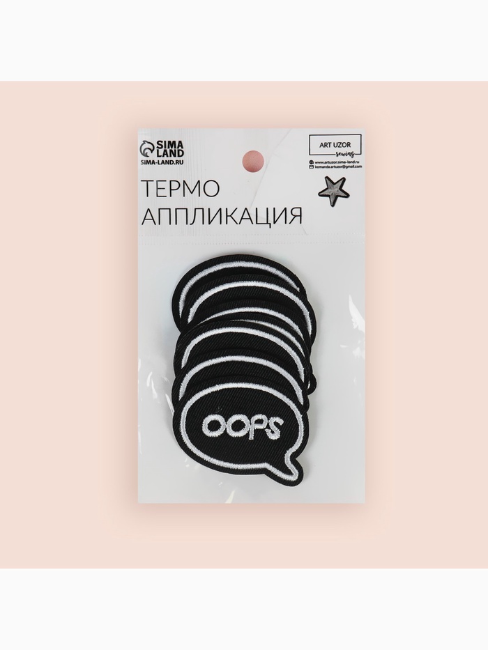 Термоаппликация Oops, 4.8×3.8 см, фасовка 10 шт., чёрная — Характеристики