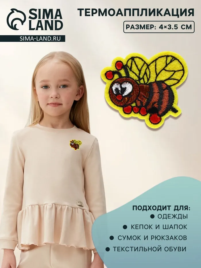 Термоаппликация «Пчёлка», 4×3.5 см, разноцветная — Характеристики