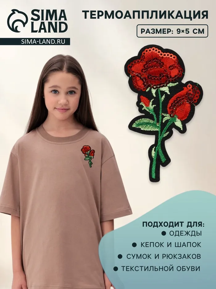 Термоаппликация «Роза», с пайетками, 9×5 см, красная — Характеристики