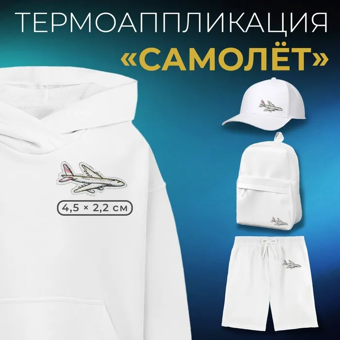 Термоаппликация «Самолёт», 4.5×2.2 см, белая — Характеристики