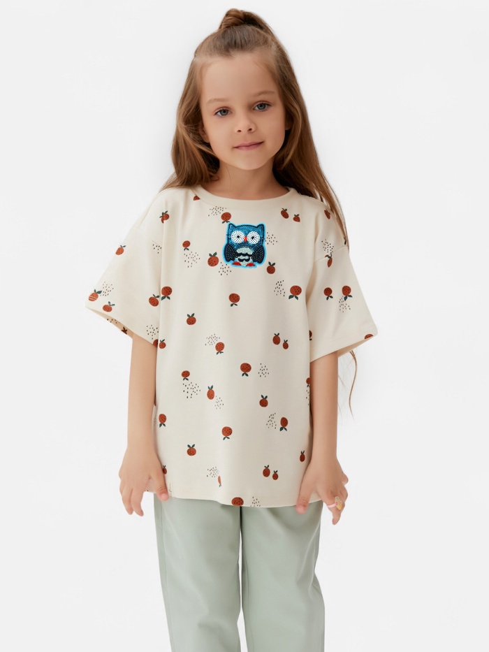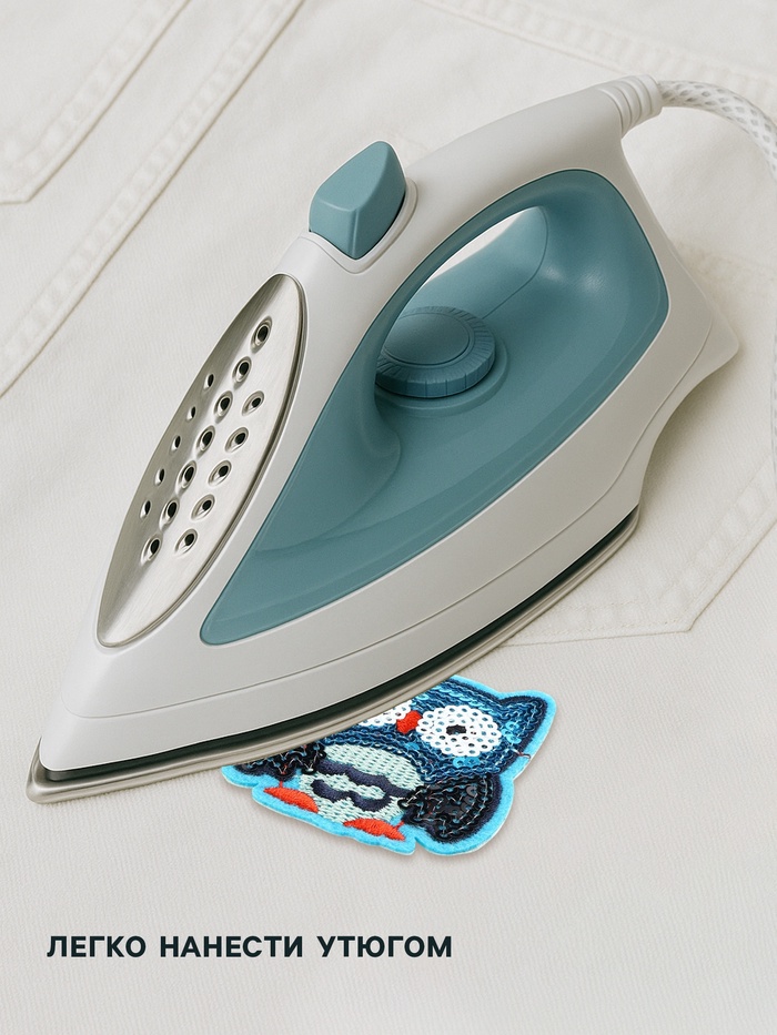 Термоаппликация «Совушка» представляет собой яркий текстильный элемент с пайетками, который можно легко зафиксировать на ткани при помощи утюга. Она станет отличным решением для украшения футболок, сумок или рюкзаков.